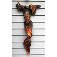 The works under the mixed media title generally are a combination of oil and acrylic paint associated with driftwood, granite, stainless steel and a variety of other materials, organic and inorganic. The canvasses can be hemmed and stretched between combinations of materials.